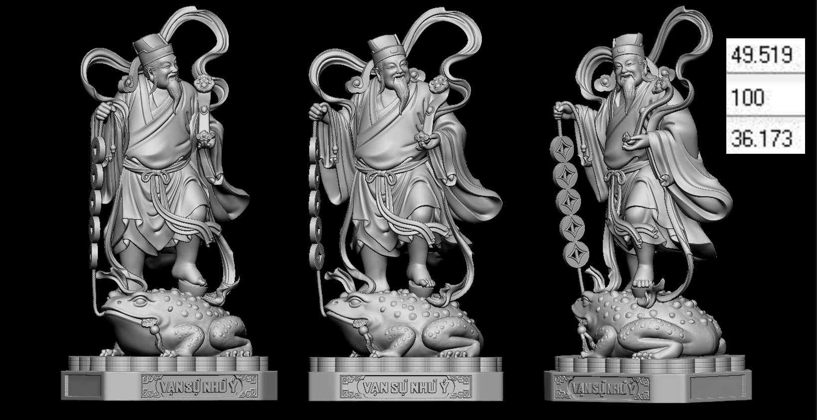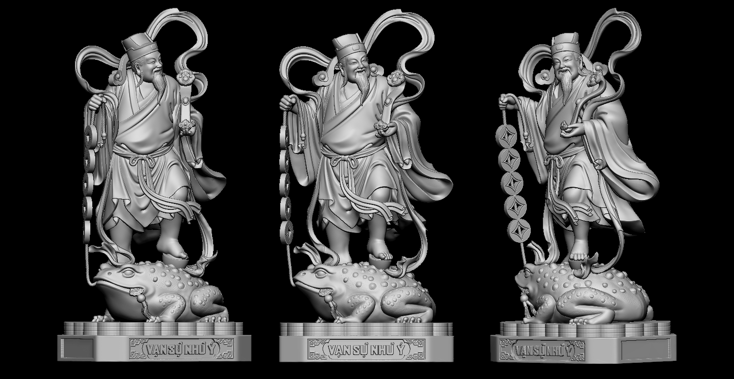 Sản phẩm là file 3D định dạng STL mô phỏng tượng Thần Tài đứng trên cóc Thiềm Thừ biểu tượng phong thủy quen thuộc giúp thu hút tài lộc, may mắn và thịnh vượng.