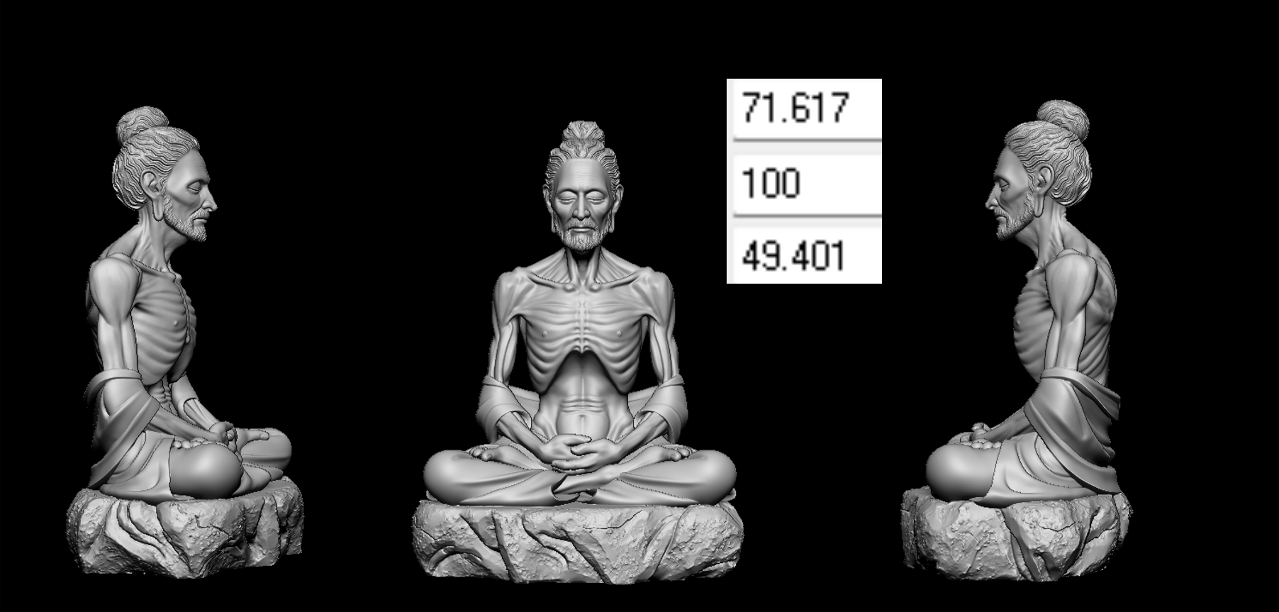 Mô hình đã được tối ưu hình khối giúp máy CNC dễ dàng gia công và giữ được các chi tiết quan trọng như khuôn mặt, nếp áo và bệ đá.